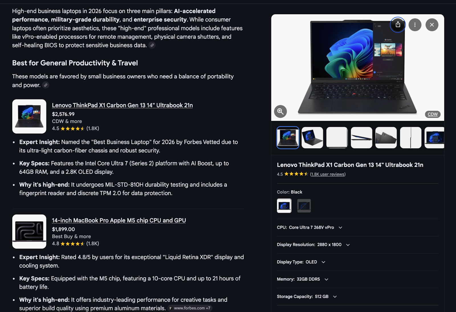 - Suppose you're tasked with buying a high-end laptop for a small business. Shortlist two products.